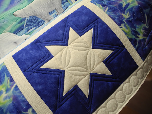 nun endlich konnte ich den Quilt "Die Bären sind los" aus der Millie nehmen. Ein paar Kleinigkeiten in der Mitte beim Bärenpanel werde ich noch mit der Sweet Sixteen quilten und das Binding wird dann aus dem Polarlichtstoff.